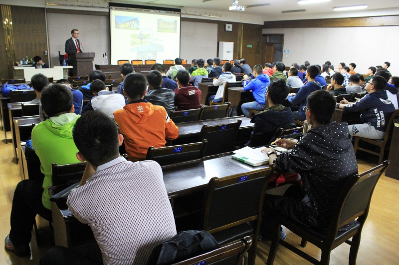 7日晚8:00-9:45,Stephen Giles向来自机电、食品、水建等多个公司的60余名同学介绍了2017年哈伯亚当斯大学暑期访学项目的课程设置、项目规划、工程与食品科研实践等内容,回答了同学们关心的话题。