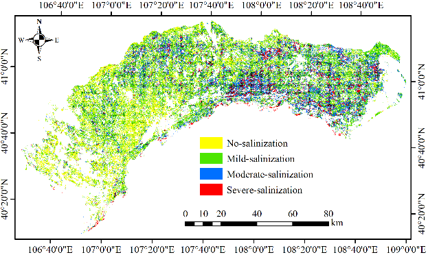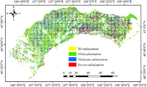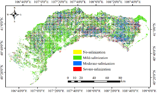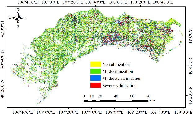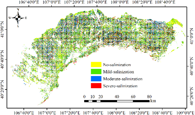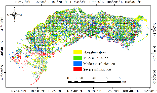 土壤盐碱化是导致土地退化的主要因素之一,影响生态平衡、环境健康及农业可持续发展。由于大尺度区域土壤性质和环境条件的时空异质性,导致土壤盐渍化监测的准确性具有一定的挑战性。本研究探讨了在时间序列上对不同作物类型进行分类是否可以提高区域土壤盐分水平的预测精度。具体而言,我们利用2021年6月至2022年9月采集的Sentinel-2多期影像和地面实测数据,评估了河套灌区(HID)不同植被覆盖下土壤盐分含量(SSC)随时间的变化。本研究以向日葵和玉米田为研究对象,对这两种作物类型进行分类并检验4种不同的时间序列对SSC估计精度的影响。从卫星影像的17个植被指数(VIs)和13个土壤盐度指数(SIs)中选取5个指数作为特征参数。此外,采用三种机器学习算法建立了SSC估计模型。研究结果强调了作物类型分类和考虑不同时间序列对提高光谱指数对SSC的响应灵敏度和提高建模精度的有效性。光谱指标中,VIs对SSC估算模型的贡献大于SIs,决定系数(R2)最高为0.71。人工神经网络算法在准确性和稳定性方面优于其他两种机器学习算法,产生的最佳R2为0.72,均方根误差(RMSE)为0.15%。本研究提出了一种考虑作物类型和不同时间序列的建模和制图方法,为准确评估土壤盐渍化及其高效防治提供参考。