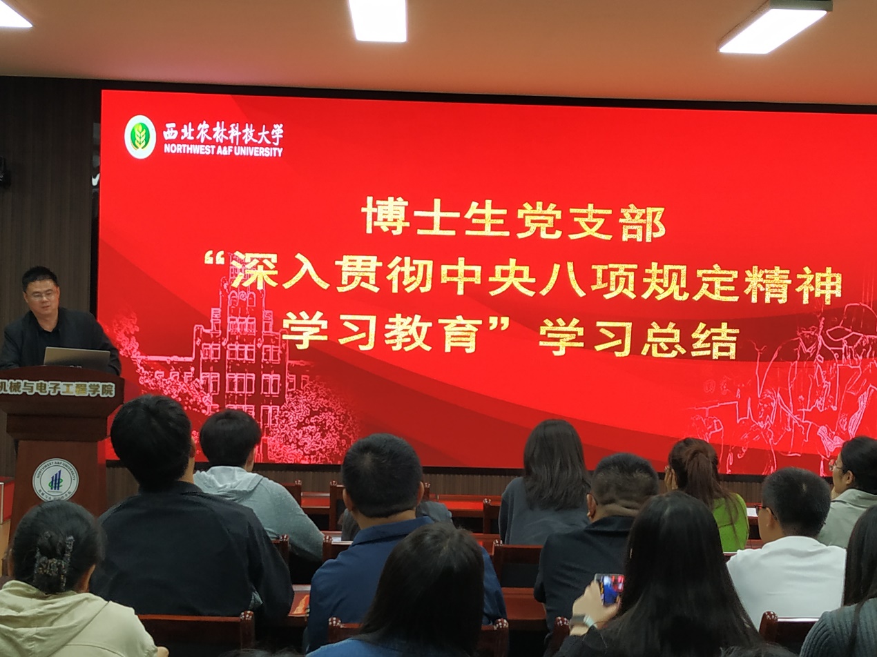 为深入贯彻落实全面从严治党要求,进一步增强博士生党员的政治意识、规矩意识和纪律意识,巩固拓展中央八项规定精神学习成果。近日,博士生党支部组织召开“深入贯彻中央八项规定精神学习教育”总结会。支部全体党员参会,党支部书记傅隆生同志主持会议并作总结汇报。
