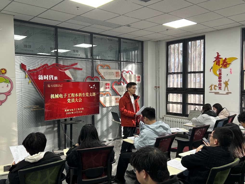 为进一步夯实基层党组织建设根基,为党员队伍充实新生力量,机电本科生党支部于11月15日召开全体党员大会,专题审议方宏圆、胡竣杰、张子烁、王永霖、郭天翼、刘梓涵、温文恺七位预备党员的转正事宜。本次会议由徐雷保同志主持,支部全体党员及发展对象共同参会。