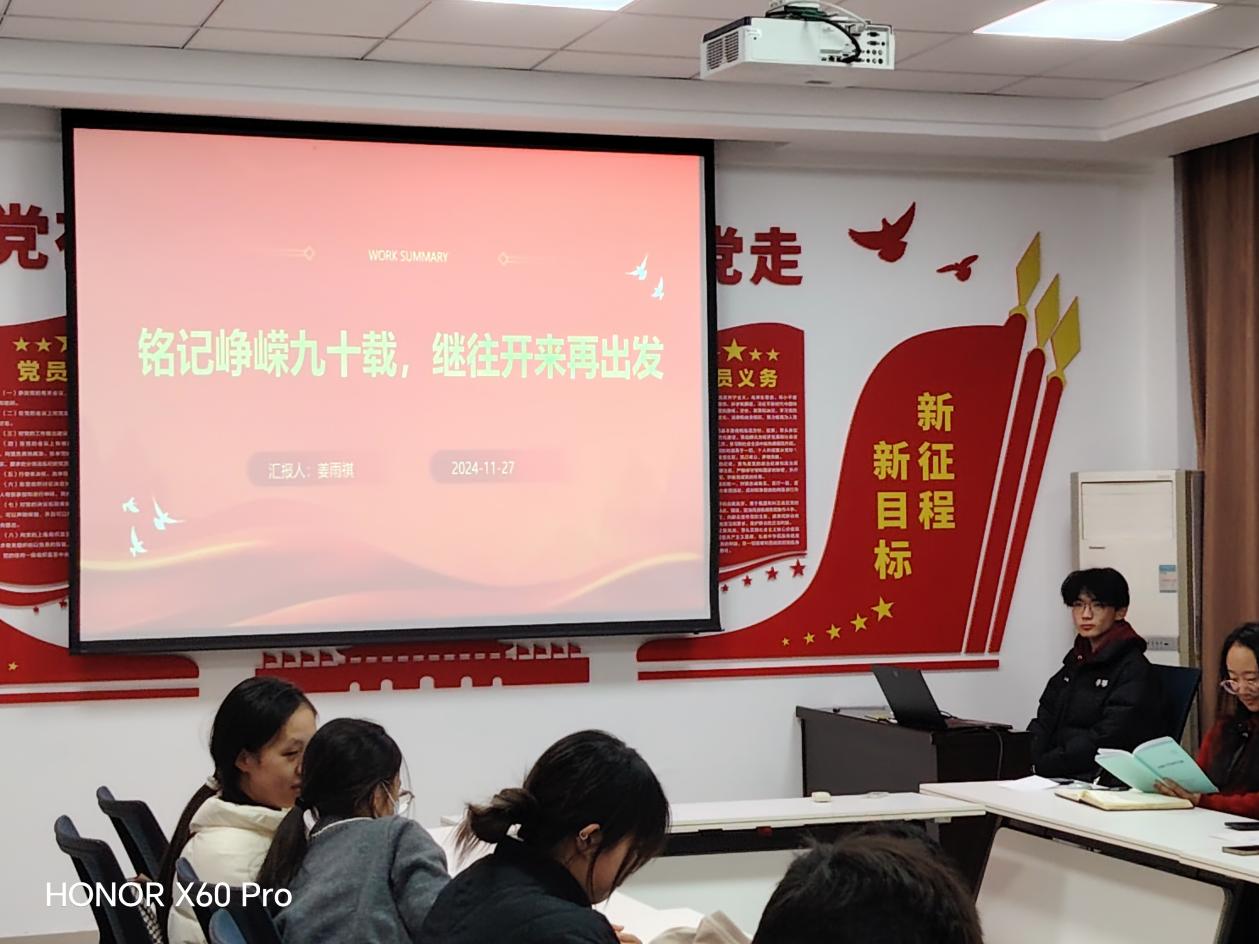 2024年11月27日晚,机制本科生第二党支部于机电公司党团活动室9331开展了以“铭记峥嵘九十载,继往开来再出发”为主题的纪念讲座。此次活动旨在缅怀革命先烈的丰功伟绩,传承和弘扬长征精神,激励全体党员和群众在新的历史条件下继续奋斗。
