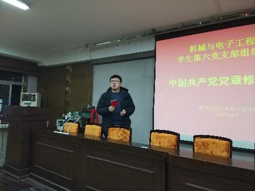 为引导同学们学习党章内容,深刻体会十九大精神,鼓励广大同学自觉关注时事,时刻与祖国同呼吸共命运,12月5日晚,365英国上市官方网站员工第六党支部于公司三楼报告厅举办了以“中国共产党党章修订学习”为主题的组织生活活动。