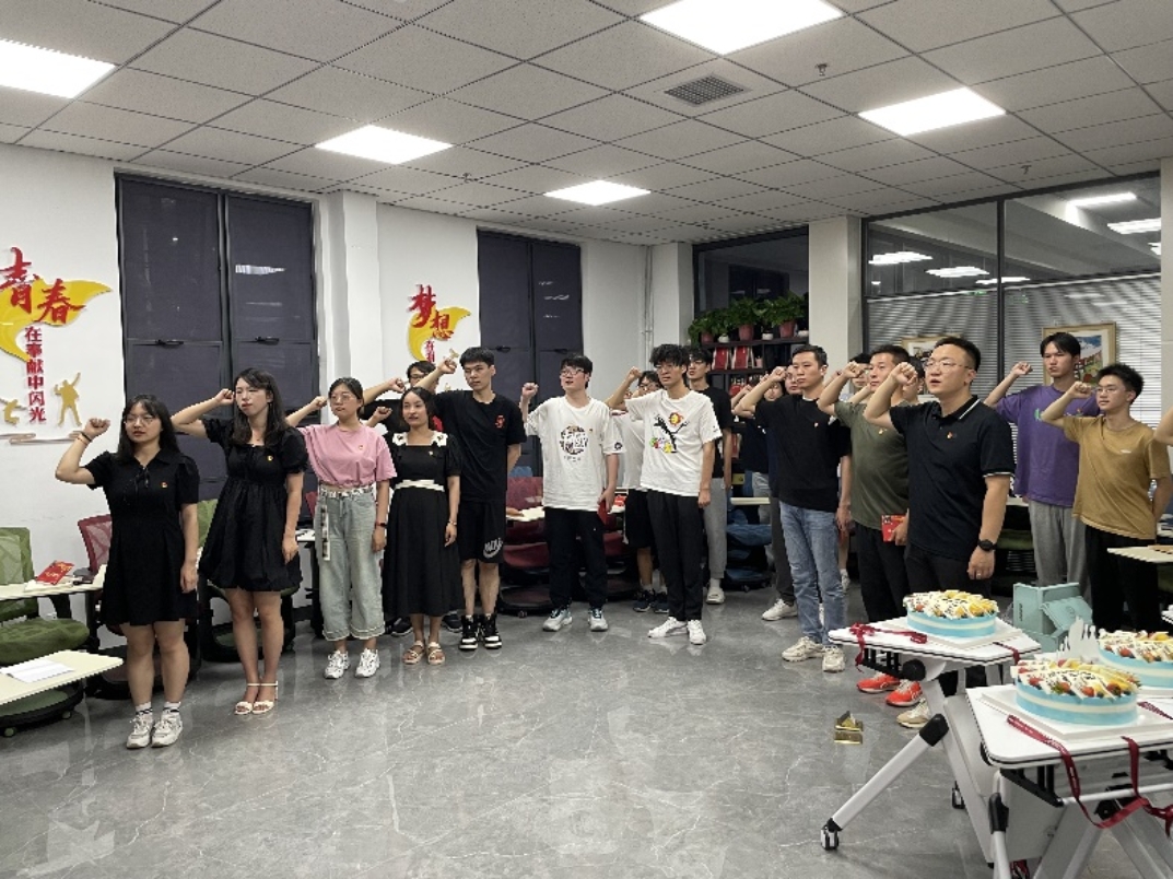 每位毕业生给学弟学妹分享经验心得,讲述了在求职、学习中应该注意的事项。在会上,党支部书记刘家同志分享了自己毕业后三次落泪的经历,对即将离开母校的员工们提出了殷殷嘱托:第一,老员工活的结束不是终点,而是新的起点,我们党支部学子要脚踏实地,不负期望,走好新征程,努力前行;第二,青年人,你永远不要忘记,真正的才华就是长期的坚持不懈。在未来的道路上,同学们只管努力,做到在顺境中不骄傲,在逆境中不沮丧,做一个有担当、有力量的人!随后在党支部书记刘家同志的带领下,全体正式党员和预备党员再次宣读入党誓词。作为一名共产党员,大家一样有两个生日,一个是出生日,以示珍重生命;另一个是政治生日,表达对党忠诚。