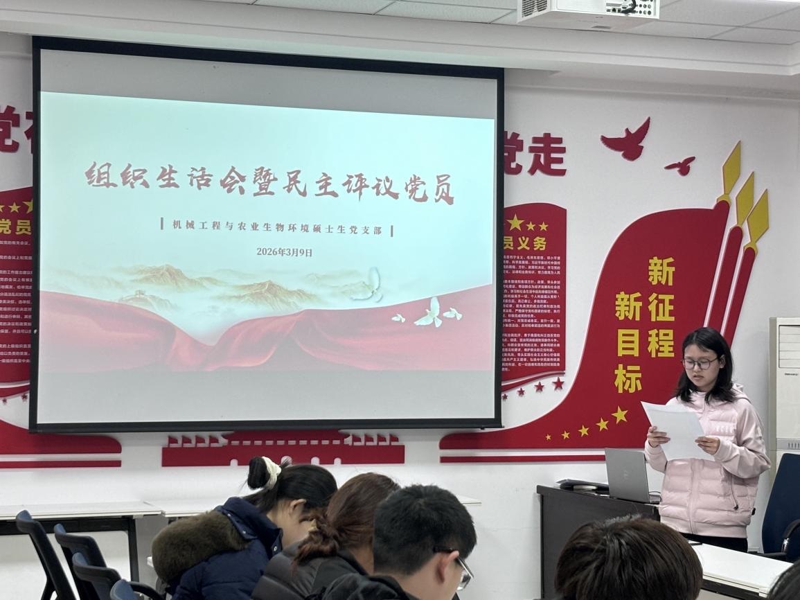 为严格落实党内组织生活制度,强化党员教育管理,锤炼党性修养,提升支部凝聚力,3月9日晚,机械工程与农业生物环境硕士生党支部在机电楼9331召开组织生活会暨民主评议党员会议。会议由支部副书记杨帆主持,支部全体党员参加。