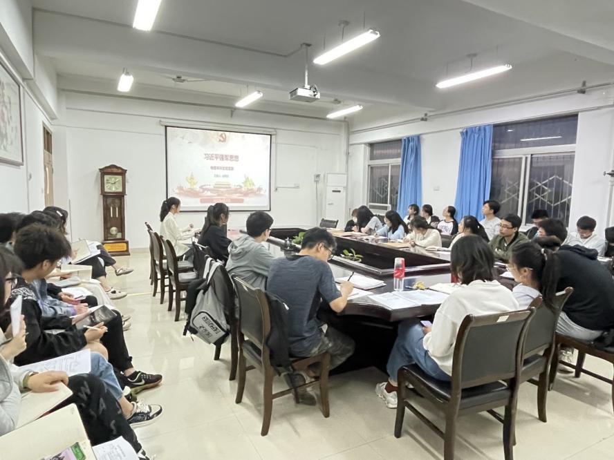 分享结束后,党支部成员就学习内容进行交流讨论。韩超越同志认为,强军备战是每个国家必须且极为重视的国之命脉,我们都知道人民乃立国之本,部队则是国之保障,国家要飞速发展,那么国家军队体制也必须进行,为了更好的适应全球格局,主席根据时代要求提出了军队体制改革的命令,作为国家的一份子,我们必须要拥护改革、献身改革;万晓鹏同志认为,习近平强军思想这一科学理论,深刻回答了新时代强军兴军一系列带根本性方向性全局性的重大问题,是打牢官兵备战打仗思想根基的根本遵循。
