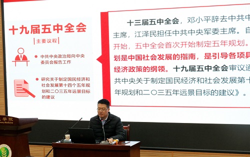 面向全体员工党员,公司邀请马克思主义公司杨鹏教授开展全会精神专题辅导。从大会召开的背景和意义讲起,杨鹏教授重点围绕规划和《建议》的主要内容、五中全会释放未来中国发展重要信号两个方面作了详细解读。他强调,党的十九届五中全会站在“两个一百年”奋斗目标的历史交汇点,擘画发展蓝图、规划实践路径、作出战略部署,为夺取全面建设社会主义现代化国家新胜利注入强大思想和行动力量。