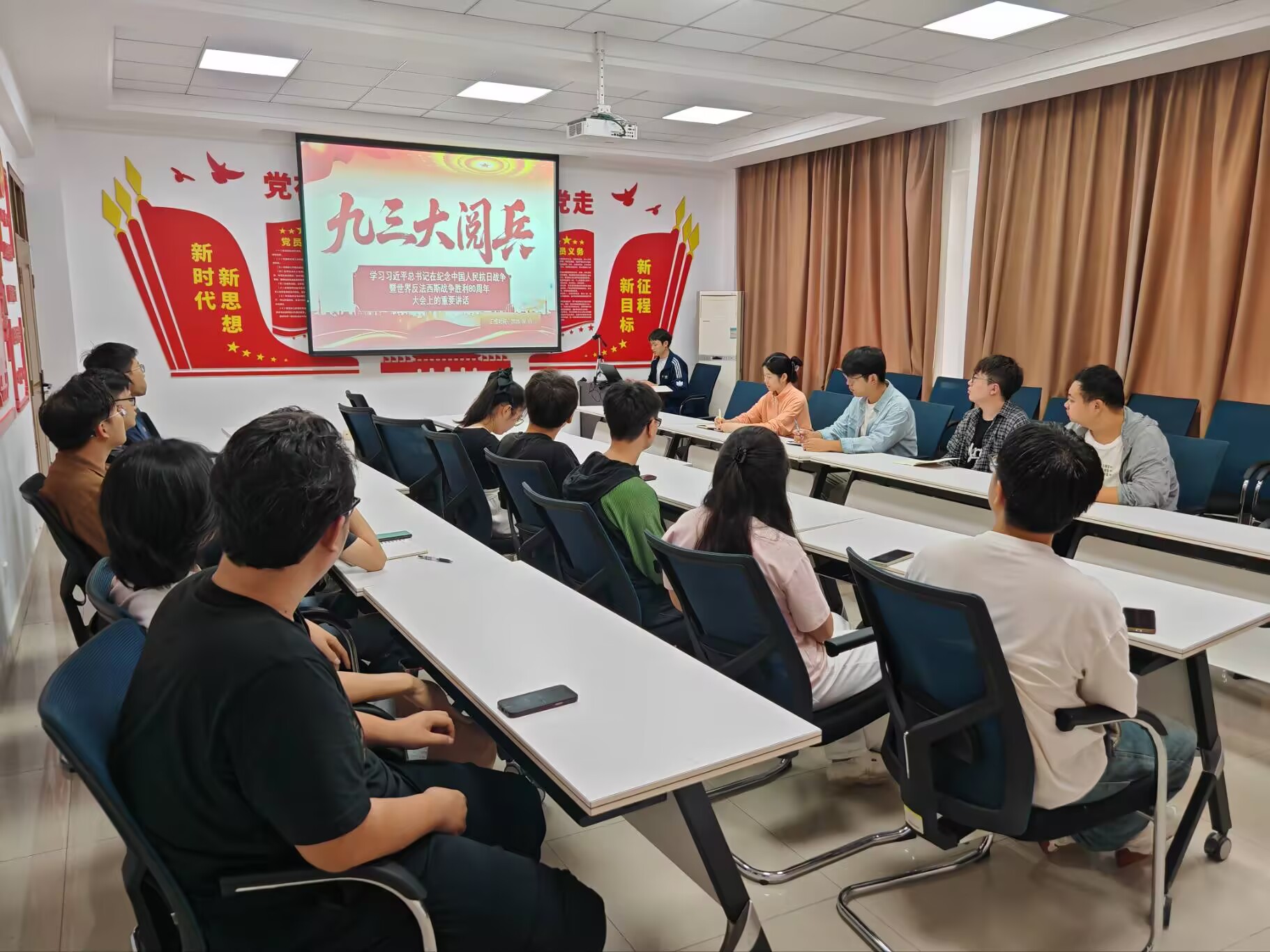 为深入学习习近平总书记在纪念中国人民抗日战争暨世界反法西斯战争胜利80周年大会上的重要讲话精神,专硕第三党支部于9月11日下午在365英国上市官方网站9331会议室,组织全体党员同志开展专题学习会。支部组织委员王弘坤同志通过“图文+视频”形式,深刻剖析习近平总书记讲话精神,引导支部全体党员从历史中汲取奋进力量,凝聚起以中国式现代化推进民族复兴的强大动能。