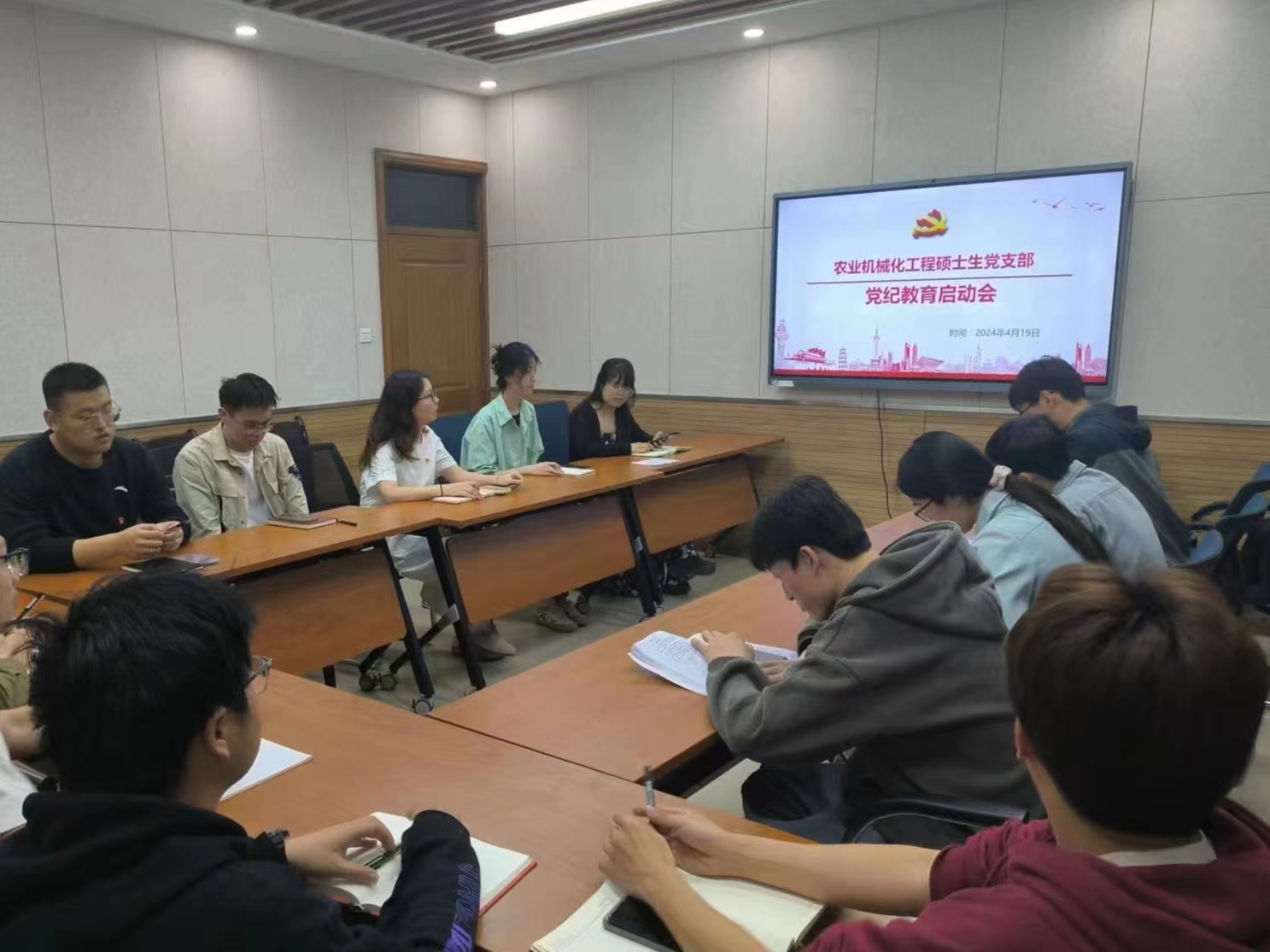 为了引导党员加强对理论知识的武装,坚定理想信念,增强党员干部的纪律意识和党性修养,4月19日,农业机械化工程硕士生党支部在9331会议室召开党纪学习教育启动会,对新修订的《中国共产党纪律处分条例》进行了集体学习。