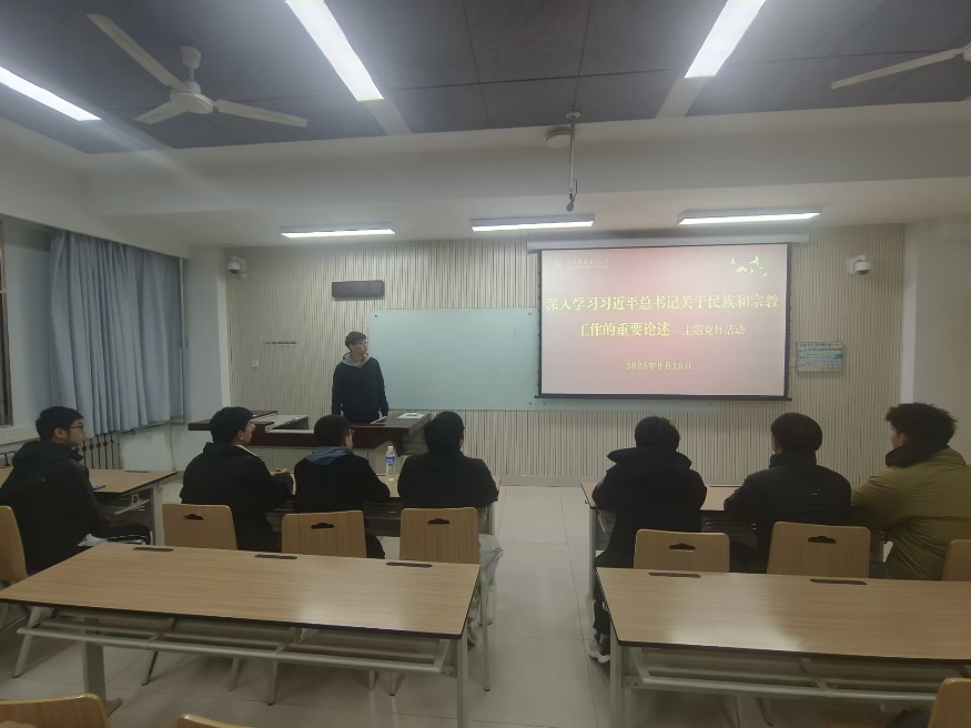 9月16日,机械电子工程本科生党支部以“深学民族宗教论述,铸牢共同体意识”为主题,组织开展专题党日活动。活动紧扣学习贯彻习近平总书记关于民族和宗教工作的重要论述主线,通过理论领学、案例研讨、心得分享等形式,引导支部全体党员、入党积极分子深刻把握新时代党的民族宗教工作核心要义,进一步增强“五个认同”,凝聚起维护民族团结、促进宗教和顺的思想共识。