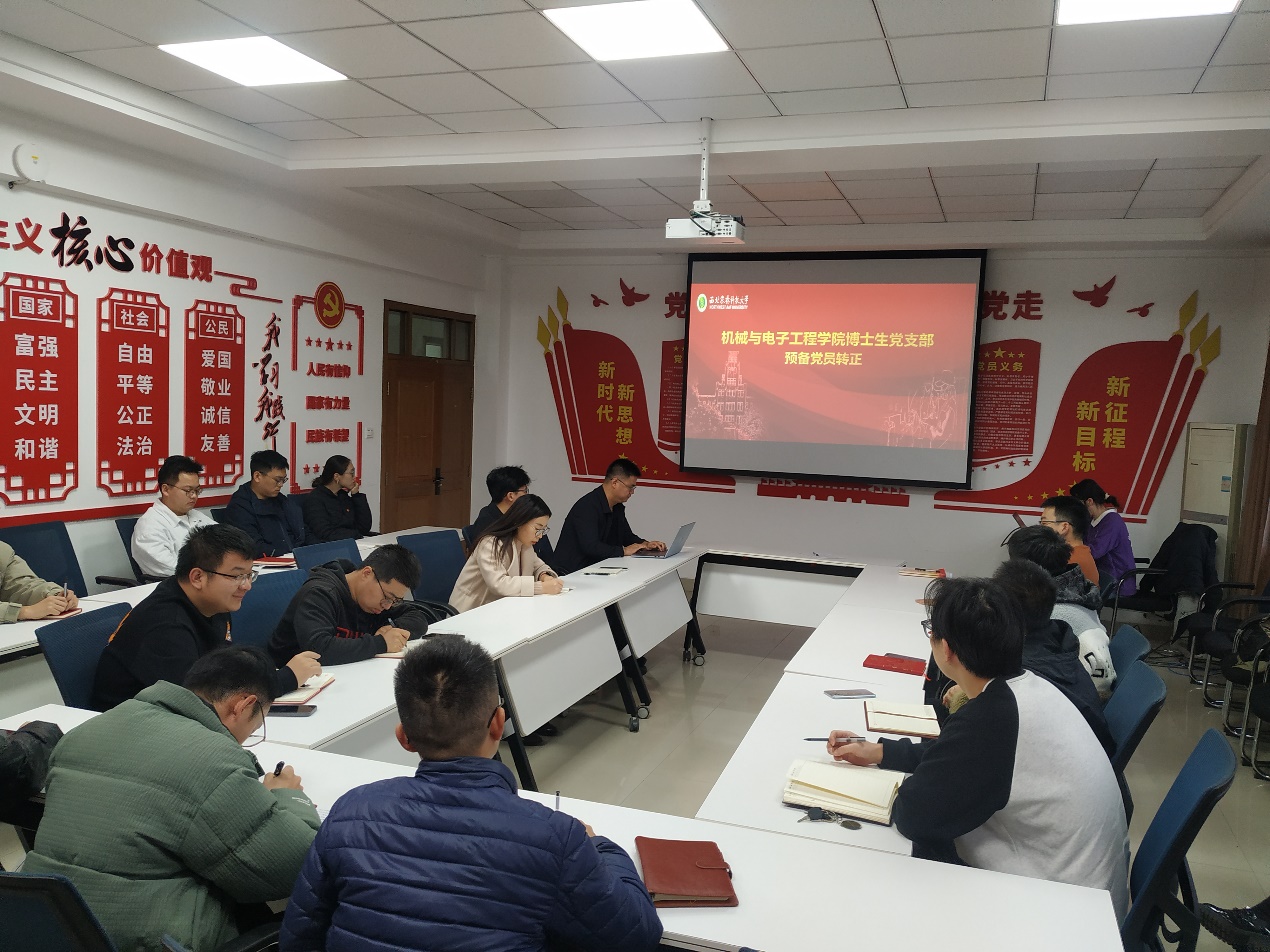 12月2日,博士生党支部组织召开了党支部党员大会,讨论阳尚宏和史翔两位同志预备党员转正事宜。会议由党支部书记傅隆生教授主持,支部全体党员参与。