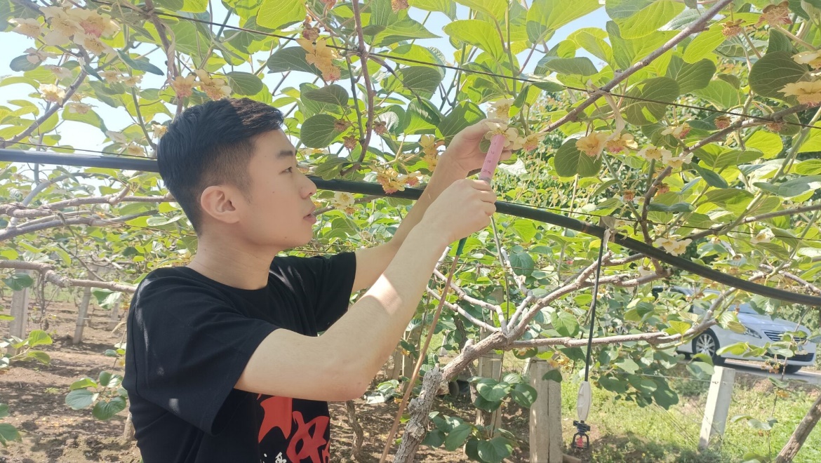 绝知此事要躬行,支部同志在村支书的带领下参与到农业劳动中来,感受给猕猴桃授粉的过程,从劳动中学习农耕知识,思考自己的前进方向,感悟乡村振兴的时代号角,践行知农爱农、强农兴农的历史使命、以实际行动去为祖国的乡村事业添砖加瓦。蓝天下骄阳似火,果林中荆棘丛生,额头上汗如雨下,目光中坚定不移,内心里矢志不渝。