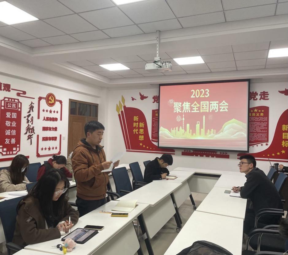 新时代新征程,江山壮丽,气象万千,在全面贯彻党的二十大精神的开局之年,在这个充满希望的春天,十四届全国人大一次会议、全国政协十四届一次会议完成各项议程,圆满落下帷幕。2023年3月22日,电信本科生党支部于N9331进行了以两会为主题的政治理论学习,本次学习由伍景涛同志主持,王勇杰同志为主讲人,全体党员同志参与学习。