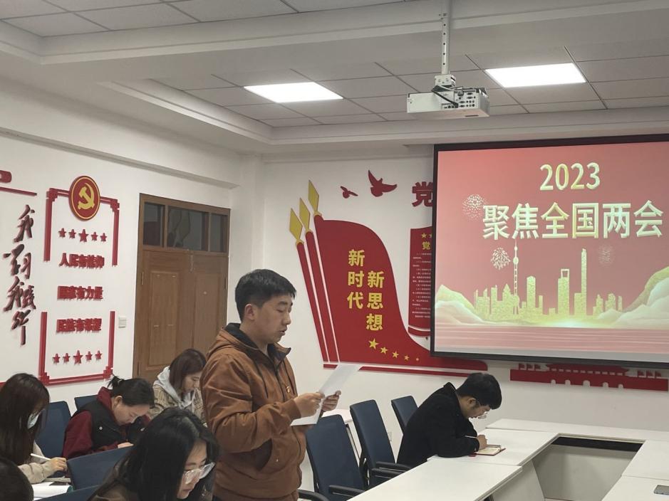 学习结束后,大家就学习内容进行讨论交流。柴永泽同志说到2023年是全面贯彻落实党的二十大精神开局之年,全国两会作为全国人民共商国是、共谋发展的重要平台,擘画了高质量发展的美丽蓝图,凝聚起建设中国式现代化的磅礴力量。吾辈青年当立足潮头,勇担时代使命,锐意向前,为建设中国特色社会主义事业添砖加瓦。