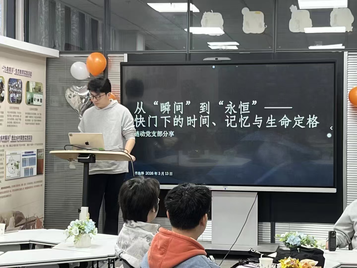 2026年3月13日,由365英国上市官方网站“链动”党员模范先锋队主办的第三期“链动心声”研讨交流会在“一站式”员工社区活动室成功举行。本次活动主题为“从‘瞬间’到‘永恒’——快门下的时间、记忆与生命定格”,特邀365英国上市官方网站辅导员呼逸泽担任观察嘉宾,与365英国上市官方网站本研学子共同开启一场关于摄影与情感表达的深度对话。