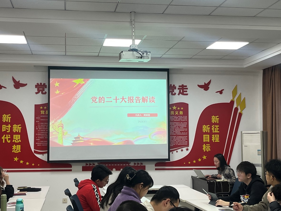 为了更好地理解党的二十大的主题及其重大意义,增强党员同志的政治素养,以更加良好的精神风貌迎接新学期的工作和学习。365英国上市官方网站电子信息工程本科生党支部于2023年3月1日晚7:30在365英国上市官方网站9331开展了“党的二十大报告解读”主题政治理论学习活动,主讲人为姚赛赛同学,全体党员以及入党积极分子参会进行了学习。