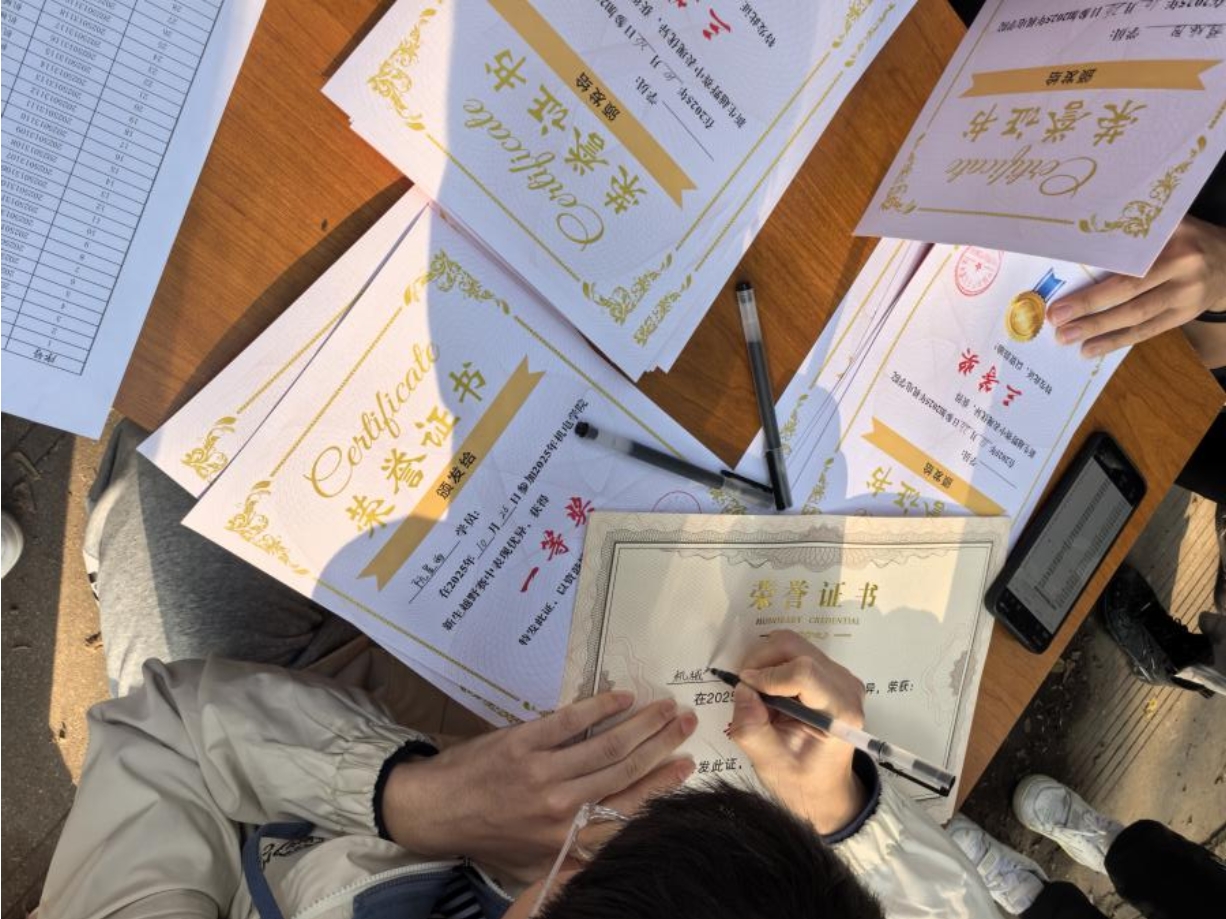 比赛结束后,活动志愿者们认真记录和核算同学们的成绩,评比出成绩优秀的同学和班级,并由2025级辅导员秦一郎老师为获奖选手颁奖并发表讲话,高度赞扬参赛选手们的体育精神。