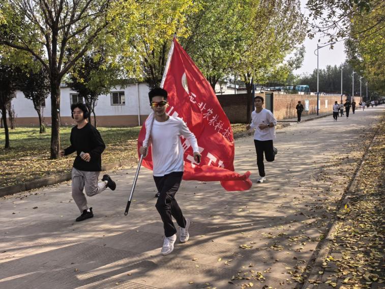 秋日当空,伴随着温暖的阳光,同学们按时到达比赛起点,在长跑队队员的带领下活动热身。