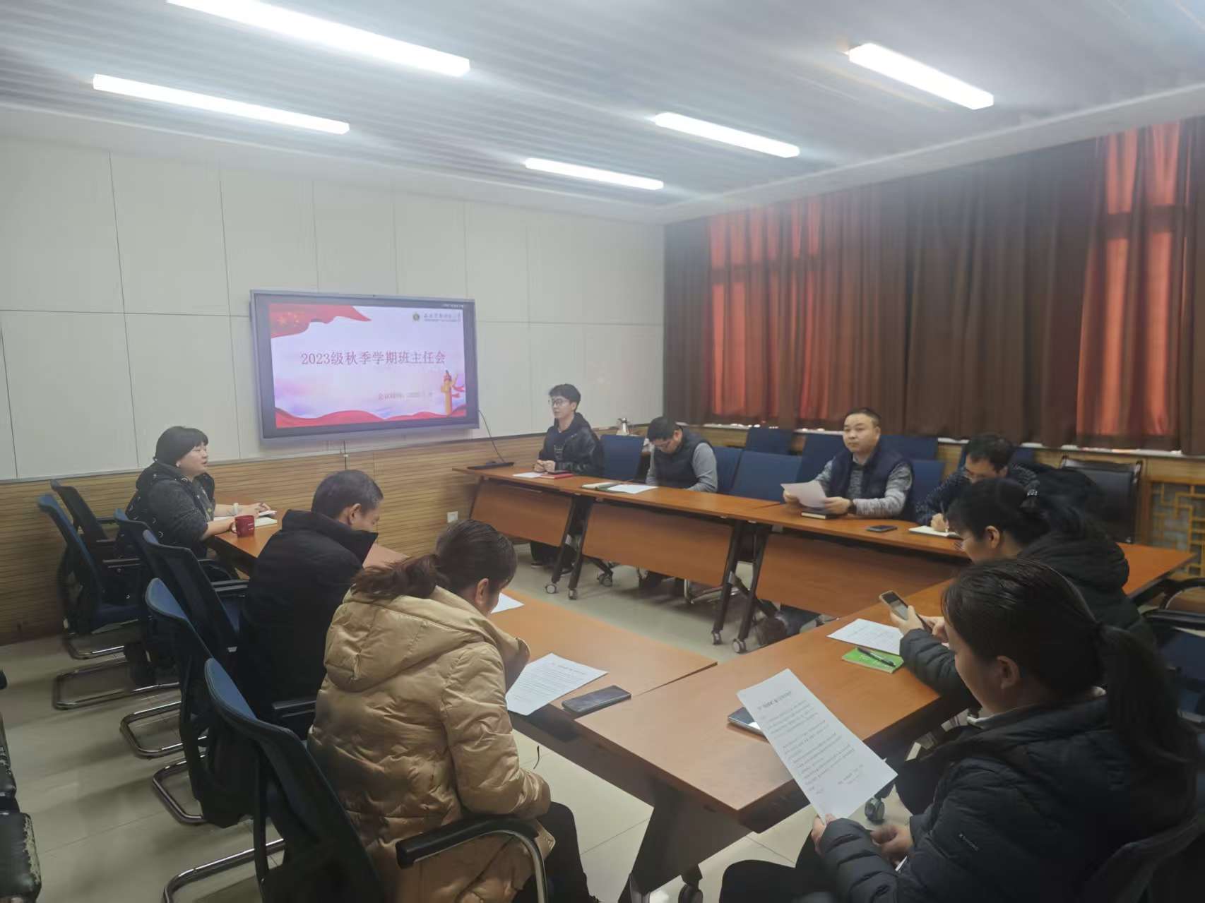 随后,辅导员呼逸泽就当前2023级员工整体学业表现、期末复习备考进度、重点关注员工群体情况,以及本学期期末工作的重点任务与时间节点向与会老师作了详细通报和解读,并对期末考风考纪教育、假期去向统计、安全隐患排查等具体事务的流程和注意事项进行了培训。