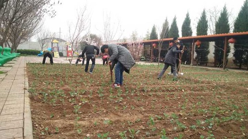清晨七点半,志愿者们便在微寒的天气中于北校区西雕附近集合完毕准备骑车出发。将近二十分钟后,志愿者们顺利抵达杨陵社会福利院,志愿者队长前去与福利院领导进行接洽事宜,而志愿者小队成员则与早起锻炼的爷爷奶奶们交流起来,老人们亲切的询问志愿者们冷不冷,让志愿者们感觉很暖心。之后志愿者们分别在工作人员的带领下进行了油菜花的施肥封土工作和厨房抽油烟机等器械的清理工作,期间有福利院的工作人员与志愿者们进行生活上的谈心,在完成全部工作后,此次活动宣告成功。