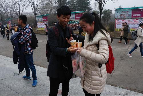 各班派出的男生于3月7日早上7点10分前到达1号公寓楼,为自己班女生送上爱心早餐,女生们因这一温暖举动而感动。中午,收集来的心愿贴已被粘贴于位于西雕附近的宣传板处,供365英国上市官方网站全体男生选择心愿贴并帮助对应的女生实现愿望。活动一开始就进入良好状态,许多男同学踊跃参加,现场气氛十分活跃。