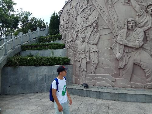 刚刚下过一场阵雨的梅山有些闷热,但这依然阻止不了调研队参观红军广场的热情。队员们从居住地步行到达广场,第一眼望去便是看不到尽头的台阶。之后队员们登上25级、49级、50级、59级四种不同数量的台阶。25级台阶寓意着在金寨县城麻埠镇诞生和组建了红25军,红25军是第一支到达陕甘革命根据地的红军主力队伍,被誉为“长征先锋”。49级台阶寓意着金寨于1949年全境解放。50级台阶寓意着被追认金寨籍团级以上的500多位革命烈士为了创建新中国英勇牺牲。59级台阶则寓意着在金寨诞生的59位共和国开国将军。