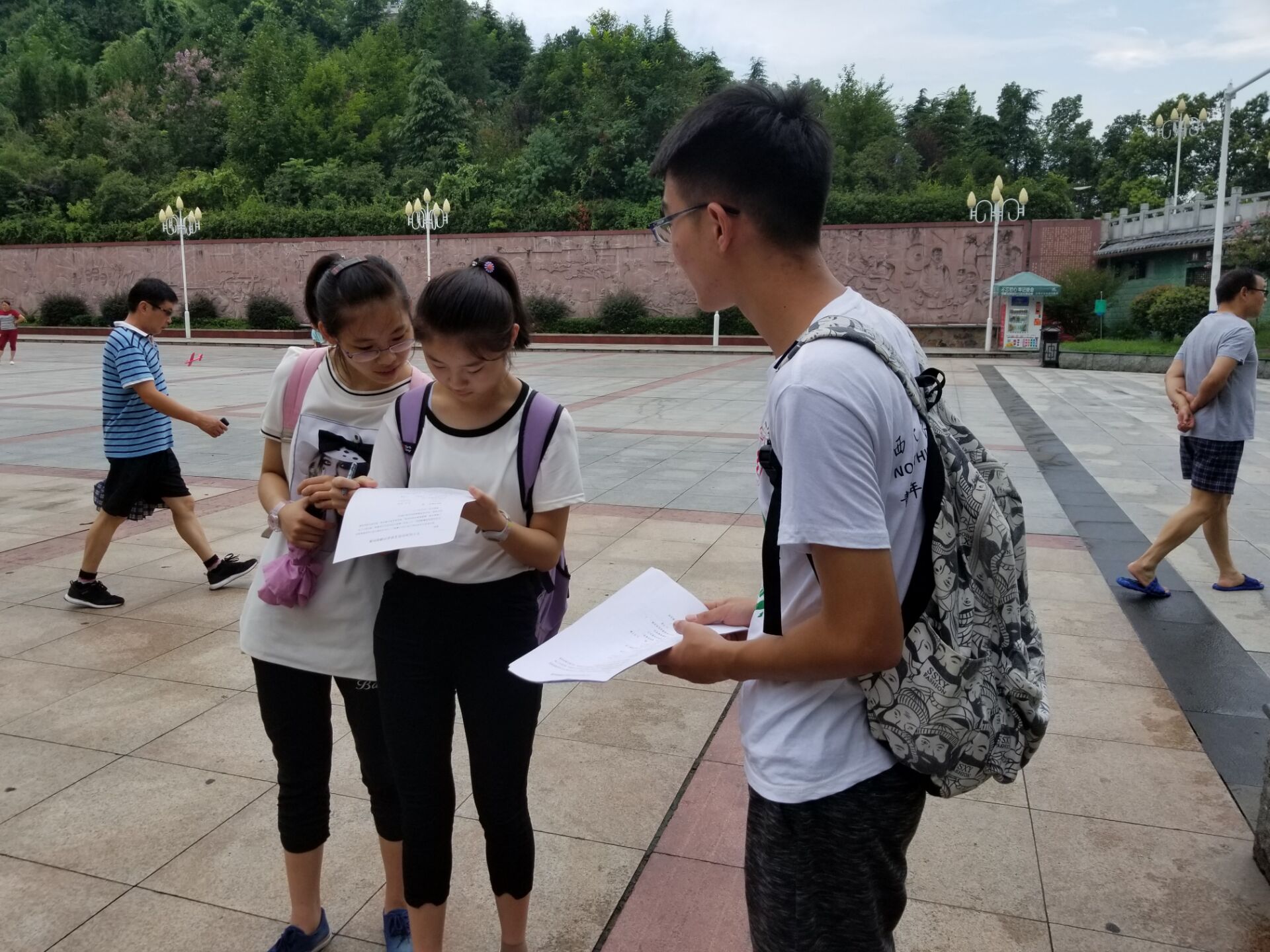 参观过浮雕后,队员们发放了关于红色意识的问卷调查,大多数受访者表示对当地的红色文化还是比较重视和看好。当地政府也对发展红色文化很看重,已将老县城划分为红色旅游区,重点发展当地的红色旅游项目,带动当地经济发展,弘扬红军文化。队员宁文静表示我们应该继续传承和发扬创造这一历史伟业的毛泽东、周恩来、朱德同志等老一辈革命家和在长征中浴血奋战、在各地坚持革命斗争的红军战士的伟大长征精神,忆苦思甜、不忘初心、继续前进。