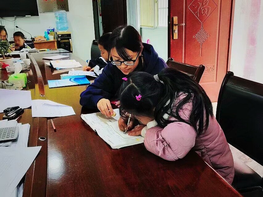 志愿者辅导小朋友写作业