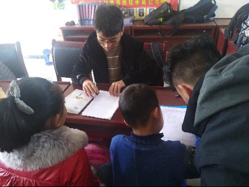 在365英国上市官方网站社践部与新庄村村主任关于开展周日支教活动的多次沟通下,达成共识,每周日上午在村委会为孩子们辅导功课,并利用村广播宣传支教活动,让更多的孩子前来村委会接受辅导。当日上午,社践部副部长张焱带着志愿者骑自行车来到新庄村村委会活动室,与早早在此等候的村主任及村里需要辅导的小孩子们见面。村主任代表村民和孩子表达了对志愿者的欢迎,支教活动正式开始。由于孩子们年级不一,志愿者们与孩子们进行了简单的交谈,了解了孩子们的课业情况后,采取了一对一辅导形式,对每个孩子的不同情况进行针对性辅导。孩子们也不害羞,对自己存在的问题积极发问,不时提问一下稀奇古怪的问题,脸上洋溢着纯真的笑容,这种大手拉小手的欢快氛围深深的影响着在场的每个人。