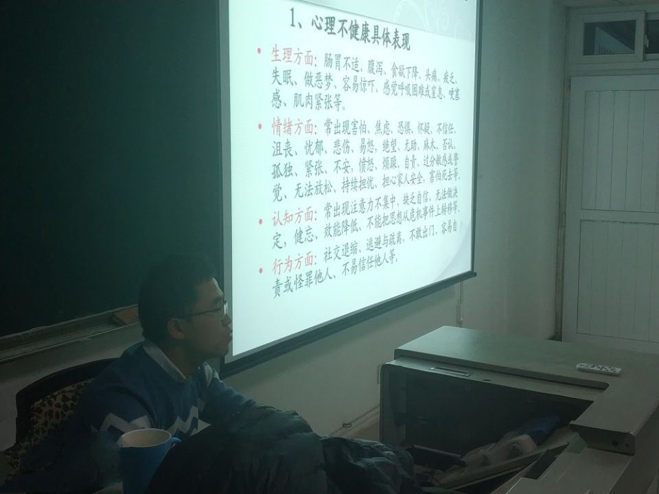 本次心理健康培训会针对性的解决了老员工常见的心理问题,同时对一些常见老员工心理问题做了预防。同时,培训会使各班心理委员意识到了自己的职责,为班里同学解决感情失利,压抑情绪等心理问题。