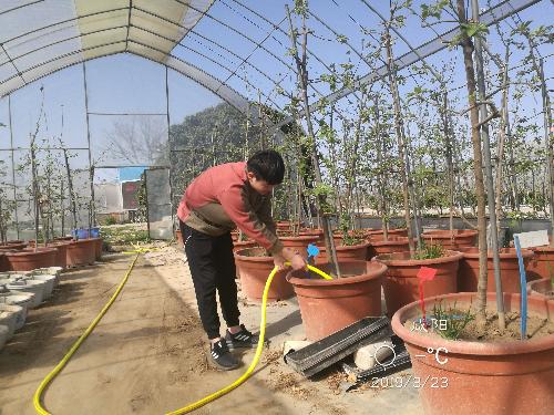 志愿者为盆栽浇水