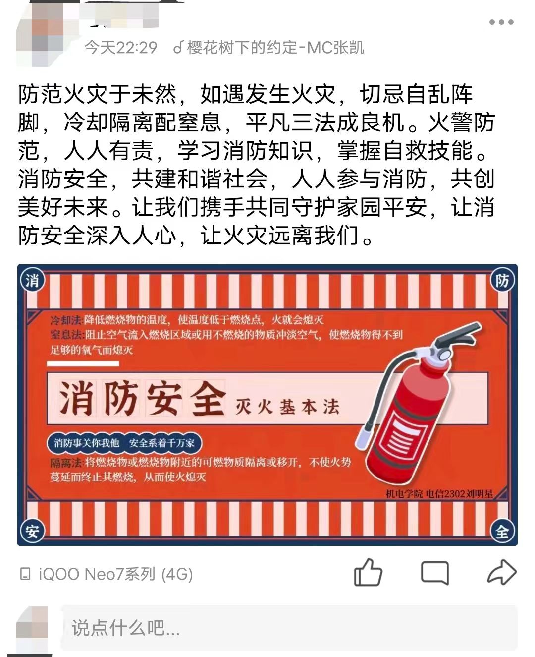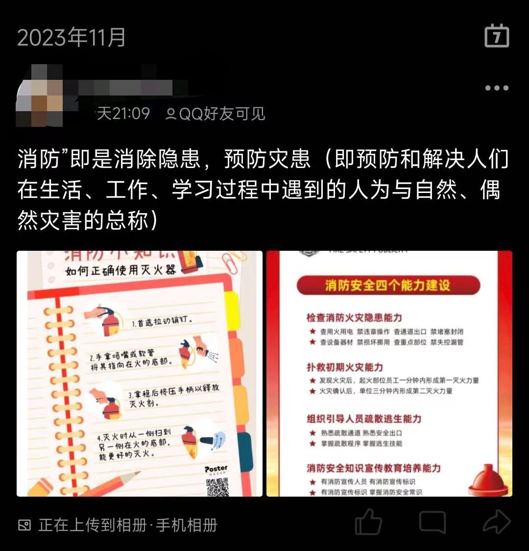 通过此次消防海报制作分享活动,同学们切实了解到消防安全之重,也从如何预防火灾避免灾情、如何在火灾中自救等方面学习到安全知识,一定程度上减少了消防安全隐患,提高了他们的火灾防范意识,为构建安全校园、和谐社会贡献出力量。