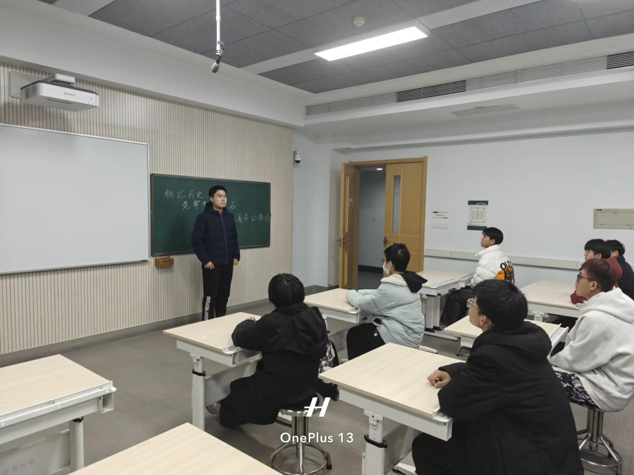 活动尾声,主席团成员总结强调,希望全体同学以此次学习为契机,做到三点要求:一是坚守历史记忆,主动学习党史国史,深刻铭记南京大屠杀等历史惨案,坚定历史自信、反对历史虚无;二是厚植家国情怀,将个人成长融入国家发展大局,把爱国热情转化为学习奋斗的实际行动;三是践行和平担当,树立正确的和平观,在校园中传递正能量,以青年之力助力构建人类命运共同体。