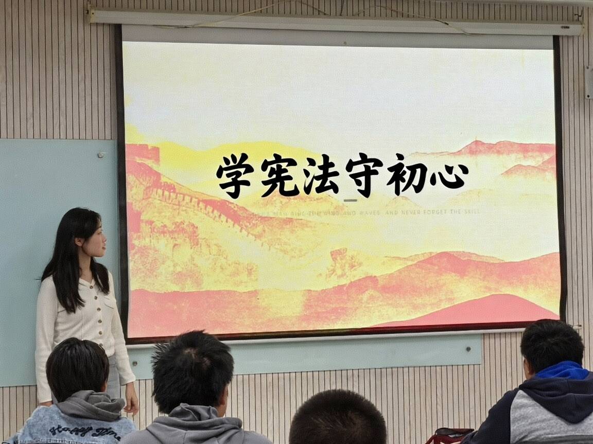 在交流研讨环节,同学们结合学习感悟与生活场景积极发言。“通过学习我意识到,宪法不是抽象的条文,而是贯穿在校园生活、就业创业等每一个环节的行为准则,比如校园里的公平竞争、网络空间的言论规范,都离不开宪法保障。”张梦洋同学分享道;阎芮琪同学则从青年担当角度提出,“作为理工科员工,我们要在科研实践中坚守法治底线,用专业能力践行宪法精神,为国家科技发展贡献合规力量”。现场讨论氛围热烈,同学们在思想碰撞中进一步深化了对宪法精神的理解,明确了自身的法治责任。