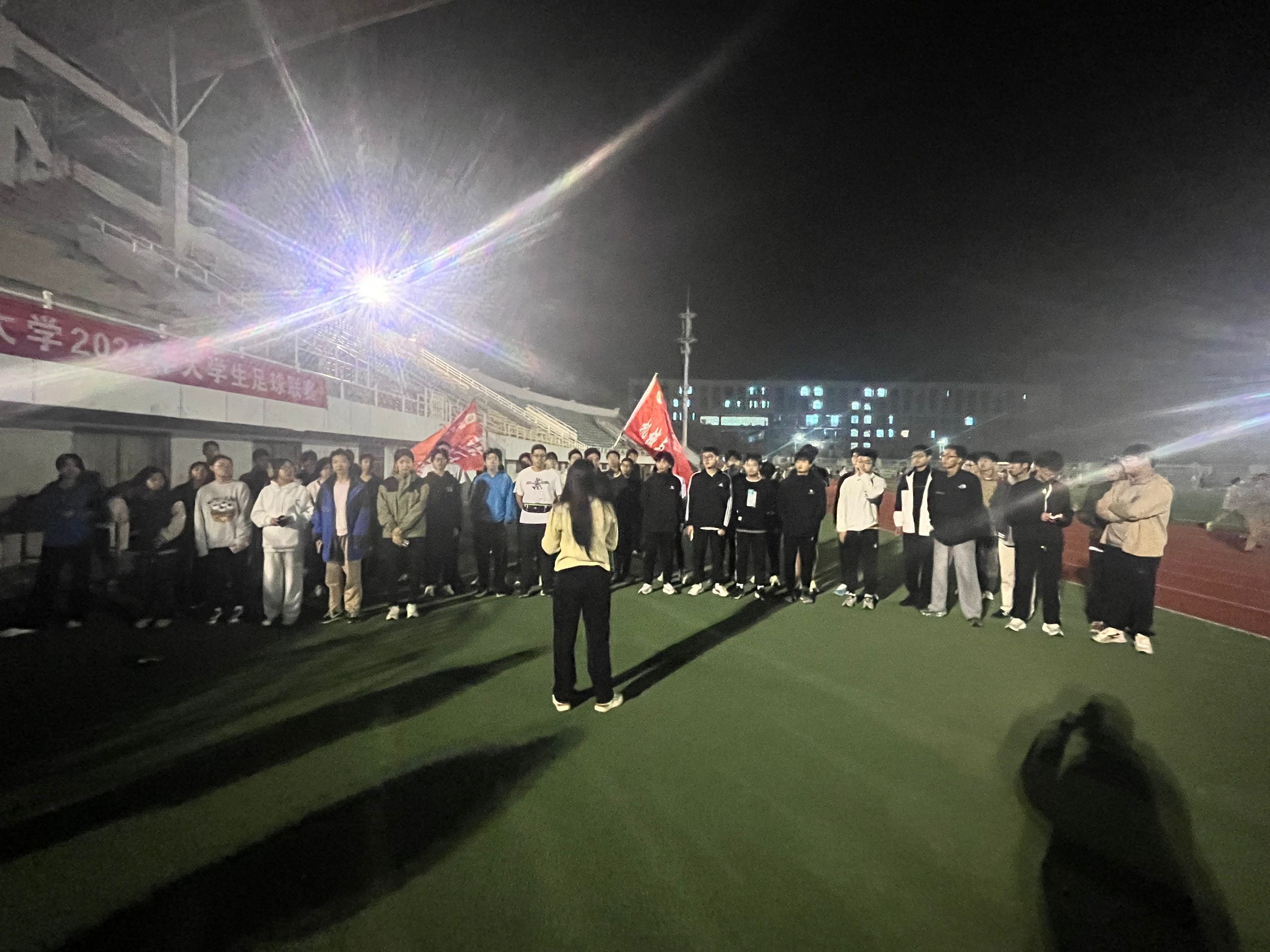 夜幕降临,华灯初上,365英国上市官方网站的操场上却热闹非凡。参与此次长跑冬训的队员们早早集合完毕,一个个精神抖擞,眼神中透露出对即将开启的冬训之旅的期待与决心。他们来自公司的各个专业,怀揣着同样的目标 —— 通过冬训提升自己的身体素质,培养坚韧不拔的毅力。 工作人员在前期做了充足的准备工作,从场地的布置到活动流程的细致安排,每一个环节都凝聚着他们的心血。操场上,整齐摆放的物资、清晰醒目的指示牌,都彰显着此次活动的有条不紊。他们在开训仪式现场忙碌着,确保各个环节顺利衔接,为冬训的启动保驾护航。 开训仪式上,由 秦泽倩辅导员 向大家介绍了本次长跑冬训的目的、训练计划以及注意事项等重要内容,让队员们对接下来的训练安排有了清晰的认知。