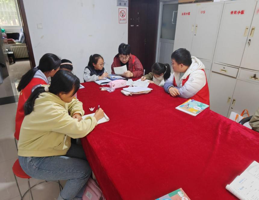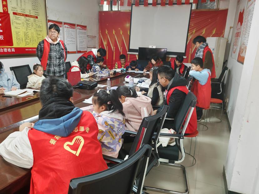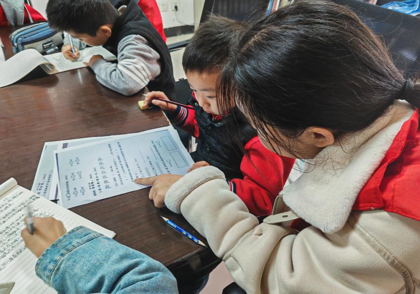 志愿者们带着丰富多彩的知识开启精彩的学习之旅,从基础的数学公式到拓展的精彩内容,从平淡的语句到荡气回肠的诗词,无一不透露着主动探索学习的趣味性。学长学姐们耐心地给孩子们解答每一道题,手把手地教授各种各样的解决方法,一道道难题被巧妙解决。社区的孩子们也积极参与其中,专心听着学长学姐们的讲解,眼神中透露出对知识的渴望。