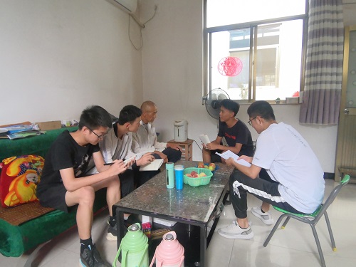 7月11日,队员们在当地农户的带领下,前往村委会向村干部进行访谈并填写调研问卷。通过对问卷内容的整理分析,队员们对当地果园种植情况与机械配备情况有了更加全面清晰的认识,目前当地果园农机的配备情况还比较落后,只有少数种类水果能够得到相应的农机设备,而导致机械化进程停滞不前的最大阻碍是地理因素的限制。