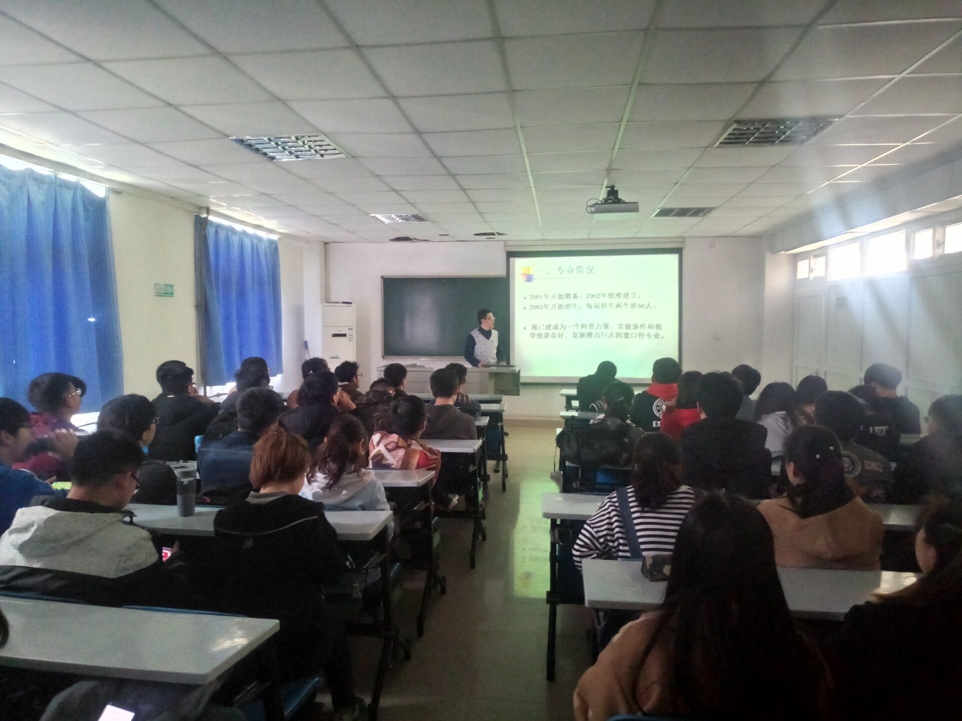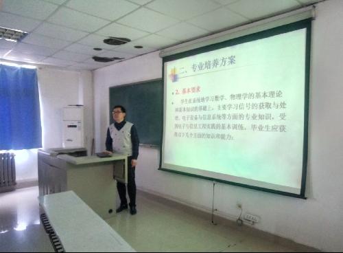 讲座刚开始,宋老师对自己进行了简单的自我介绍,进而开始了专业学科知识的分析。老师从主要学科,学科分类等角度为同学们分析专业就业方向,如电子产品设计开发,信号与信息处理,通信工程领域,计算机应用及控制领域,让同学们对学科重点有了更深的理解。老师送给大家一句话:“如果你的未来拿不出手,谁会听你悲惨的过去。”鼓励大家努力奋斗,有些科目即使复杂,也要认真的学。