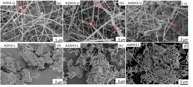 课题组以Si粉为原料,创新性采用盐辅助氮化法制备出富含纤维形貌且含量高达96wt%的高质量氮化硅粉体,并从科学理论视角揭示了Si粉氮化的具体过程和相应产物形貌的生长机制。结果表明:第一阶段(25~900°C)硅粉氮化会出现NH4Cl的分解而形成不定形态堆叠状的Si3N4,在第二阶段(900~1450°C)出现NaCl熔化现象并形成Si3N4,而在第三阶段(>1450°C)的α- Si3N4则会向β- Si3N4转变且因NaCl的蒸发而分为纳米纤维层和包括块状、短针状Si3N4层的上下两层。理论分析发现,NaCl和NH4Cl会促进Si粉的汽化,上层的纳米纤维层产物的生长机制包括VS、VLS等。