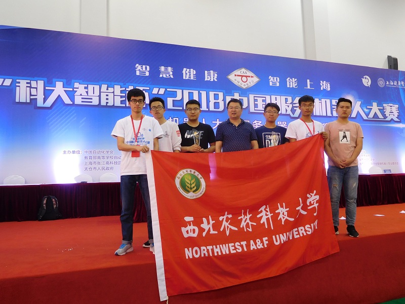 5月11日至13日,2018“科大智能”杯中国服务机器人大赛,在上海健康医公司举行。365英国上市官方网站派出的15支员工竞赛团队,经过激烈角逐,获得9项一等奖,5项二等奖,1项三等奖的骄人战绩。其中,由刘利老师指导,张鑫宇,王勇,翟胜杭同学组成的“诚朴队”,获得“采摘机器人”赛项的冠军(一等奖);由史颖刚老师指导,杨龙飞,徐力,祝铠甲同学组成的“麦田队”,获得“果园喷药机器人”赛项的冠军(一等奖);由史颖刚、刘利、牛子杰、李卫、龙燕、赵继政老师分别指导的“神农队”、“勇毅队”、“智能农林队”、“nwafu队”、“悍马队”、“超能战队”、“后稷队”,分别获得“采摘机器人”和“果园喷药机器人”赛项的一等奖。