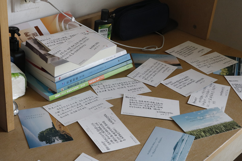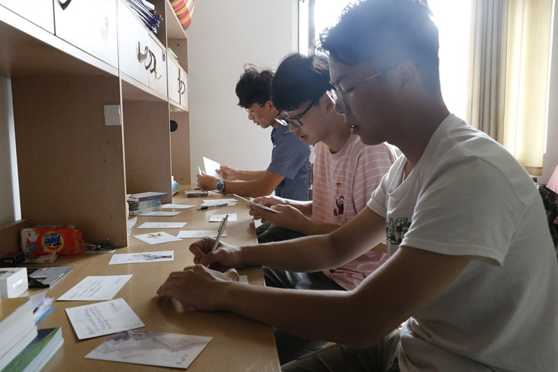 同学们一笔一划将炽热的心描摹在一句句真挚的祝福上。