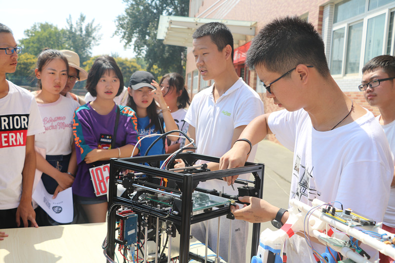 来自“创客之家”的“并联臂3D打印机”、四旋翼无人机、智能车与机器人、激光切割产品工艺和“虚拟仿真”等项目,精彩呈现了公司老员工科技创新的水平。来自上述5个兴趣小组负责人对创新项目的功能、创新点、开发过程及其应用逐一进行详细讲解,参与创新活动的员工对创新项目进行认真演示,参观的广大新生兴致浓厚,认真观看,感触颇深,赞赏有加。