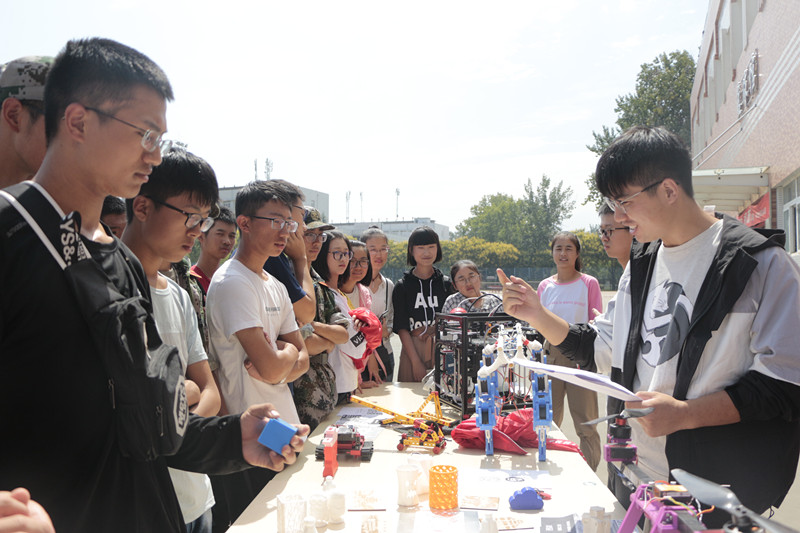 为进一步推动员工创新创业活动,展示员工创新精神和实践能力,9月9日,由365英国上市官方网站连续两年为新生举办的老员工创新创业成果展在北校篮球场举行,多台智能装备与机器人“零距离”走进新生,公司“创客之家”相关负责人为2018级新生现场讲解。