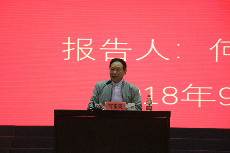 在报告中,何东健以“厦门大学‘洁洁良’事件”、“湖南城市公司新生辱华事件”切入主题,围绕爱国、责任、志向、学业、心理等五个方面展开讲述。他指出,爱国,是一个人立德之源、立功之本。大学时代是人生成长的重要阶段,是世界观、人生观和价值观形成的关键时期,要把自己的理想同祖国的前途、把自己的人生同民族的命运紧密联系在一起,扎根人民,奉献国家;他畅谈新生应将责任和社会发展结合起来,牢记国家和民族的责任,为智慧农业发展勤奋学习,以首届农民丰收节的实例说明老员工肩负着为国家发展现代农业提供现代工程技术手段的重任;他鼓励新生立鸿鹄之志,做中国梦的奋斗者,坚定理想信念,确立自身长期目标和短期目标,培养自我管理能力和坚韧不拔的自我激励能力;谈到学业,他与新生畅谈“工匠精神”,希望同学们求真学问,练真本领,掌握科学的学习方法,精益求精、追求卓越;最后,他衷心希望青年学子能“保持一个乐观的心态,培养自身健全人格,不畏挫折,勇于攻坚克难去追梦”。