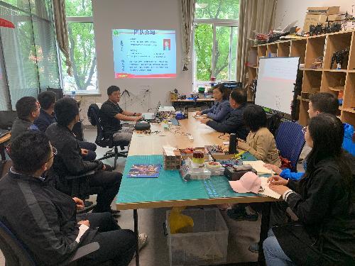 首先,由牛子杰老师围绕创新创业项目《基于超续航氦气球无人机的三边定位算法优化型森林防护系统》、《基于并联机器人和柔性负压吸力的果蔬智能采摘系统》等对团队科创历程展开详细的介绍,同时在“冷冰冰”的机器人介绍中融入对于科技创新教育的满满温情。他谈到,当代老员工具有非常淳朴的创新思维能力,要在科创中发挥好育人功能,将工匠精神融入到思政教育中,作为青年教师要清晰认识到,教学科研与老员工创新创业之间是相铺相成的。