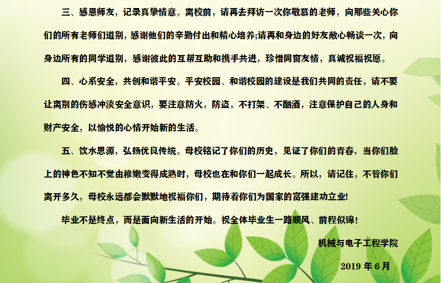 2019届毕业生文明离校倡议书