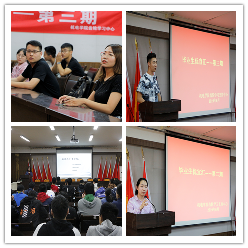 三期“优宣汇”分别以升学、求职、基层就业为主题,来自机械电子工程专业的毕业生仝赓考取了西北工业大学研究生,他讲述了曾经屡战屡败却屡败屡战,直到最后信心满满地说出“我能行”的考研生涯。被推免至清华大学的机械设计制造及自动化专业毕业生张蕾说,莫问前程有愧,只求今生无悔,大学就应勇敢去做自己并且坚定地朝着目标而奋斗。曾任院员工会主席的毕业生张鑫宇在今年3月与中铁隧道局集团有限公司签约,他详细讲述了他的面试经历,他说大学为之付出汗水,但同时收获了精彩与别样青春。成功签约宁德新能源科技有限公司的农业机械化及其自动化专业毕业生蒋红静着重讲述了工作面试时应有的准备工作,包括对“无领导小组”、企业“狼性文化”的认识,也概述了面试时如何制作简历等技巧。被英国诺丁汉大学录取的毕业生白鸽讲述了她选择国外大学所需要的条件,分享了她在大学的科研之路及多次参加专业外语考试的经历,不轻言放弃,终守得云开见月明。来自电子信息工程专业的毕业生薛杰被甘肃省选调生录取,他详细介绍了选调生的含义以及成为选调生的条件,他说,时不我待,为梦拼搏,到祖国最需要你的地方去,从现在开始,希望同学们定下一个目标,大学纵有迷茫,静下心来好好沉淀,一步一步向前,总会有一个完美的谢幕。