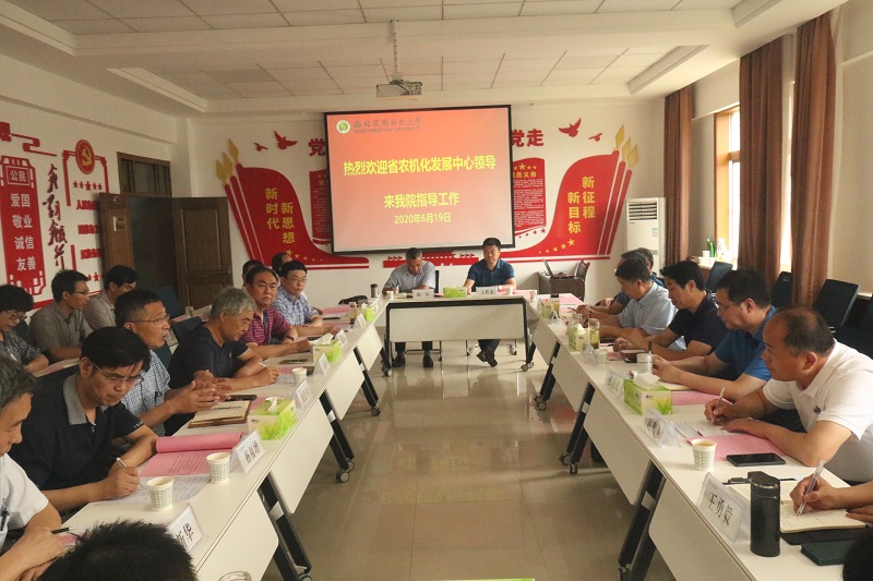 6月19日,为推进农机农艺深度融合,陕西省农机化发展中心党委书记、主任范海龙,副主任翟高友、上官永带领综合处、产发处、生产指导处、科技推广处、安全服务处、农产品加工处、补贴办、装备处负责人一行11人来校调研座谈,开展专家对接活动。机电公司党委书记戴军主持会议。