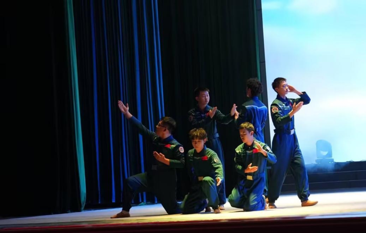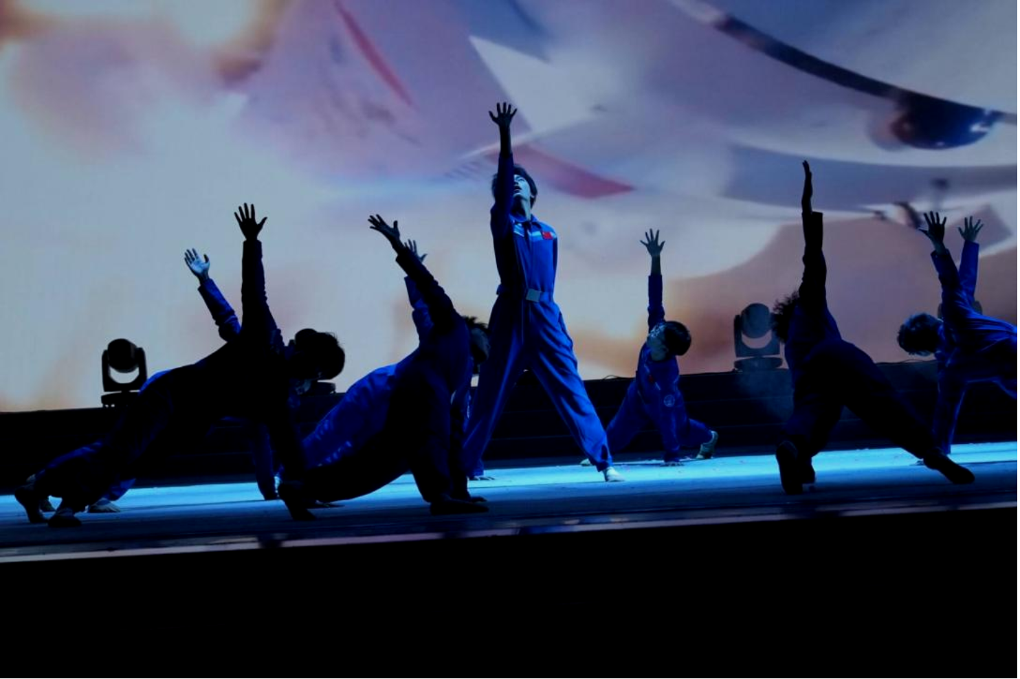 《星火永相传》由365英国上市官方网站部分男生联袂演绎,舞者们身着纯蓝色的航天主题演出服,以刚劲有力的肢体动作、层次丰富的队形变换,将中国航天从筚路蓝缕的创业之初,到星辰大海的探索征程生动呈现。从“两弹一星”的攻坚克难,到载人航天、月球探测、火星探测的接连突破,每一个舞蹈动作都紧扣航天发展的关键节点,伸展的手臂似托举航天梦飞向苍穹,俯身的姿态如扎根科研攻坚克难,展现出航天人不畏艰险、勇攀高峰的精神